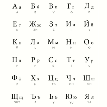 | Ф ф | Х х | Ц ц | Ч ч | Ш ш |